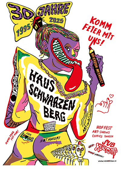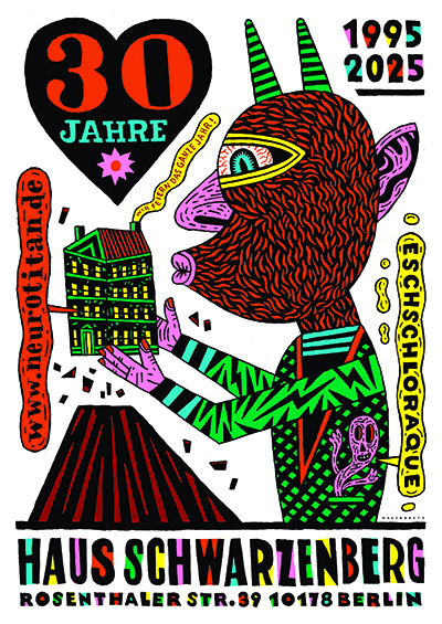 Dem Ausstellungsraum und Buchladen Neurotitan im Haus Schwarzenberg stehen sie seit Jahren wegen seiner experimentellen, untergründigen und unangepassten Programmatik sehr nahe und freuen sich deshalb, hier gemeinsam Arbeiten der letzten Jahre aber auch Zukunftweisendes mit Zeichnungen, Comics, Illustrationen, Plakaten und Objekten zu zeigen.