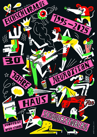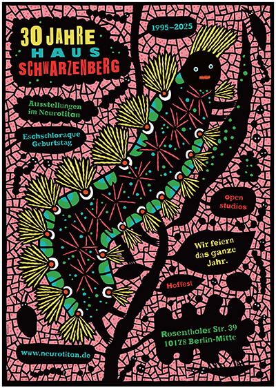 Zu seinem 30. Jubiläum suchte das Haus Schwarzenberg, einer der letzten Orte einer Gegenkultur zur inzwischen durchkommerzialisierten Berliner Mitte, nach Plakatgestalter*innen – die Wahl fiel auf Katia Fouquet, Jakob Hinrichs, Sophia Martineck, Paul Paetzel und Henning Wagenbreth.